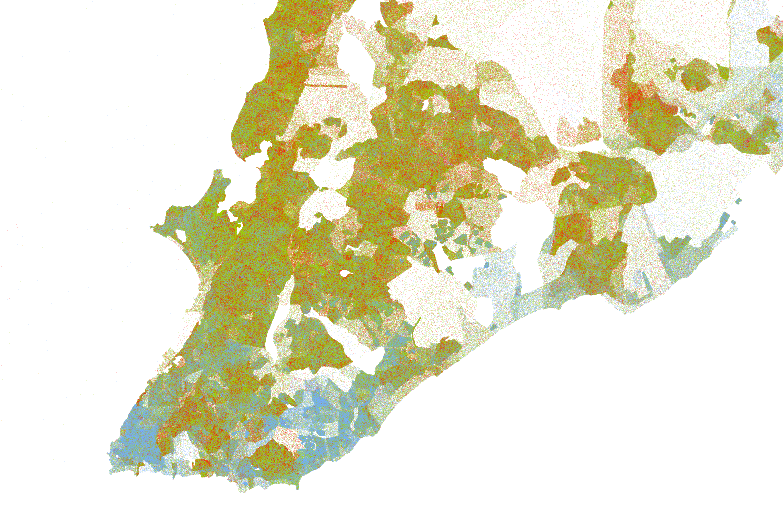 Foi lançado ontem um mapa interativo em altíssima resolução que permite visualizar de um jeito fantástico a distribuição racial do Brasil, a partir dos dados do censo do Instituto Brasileiro de Geografia e Estatística.