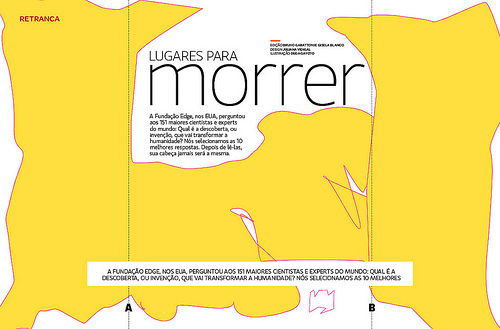 Resolvemos então fazer a dobradinha Super: num primeiro momento, o leitor veria ilustras coloridas, engraçadas, animadas. Mas depois que dobrasse, apareceria a caveira!