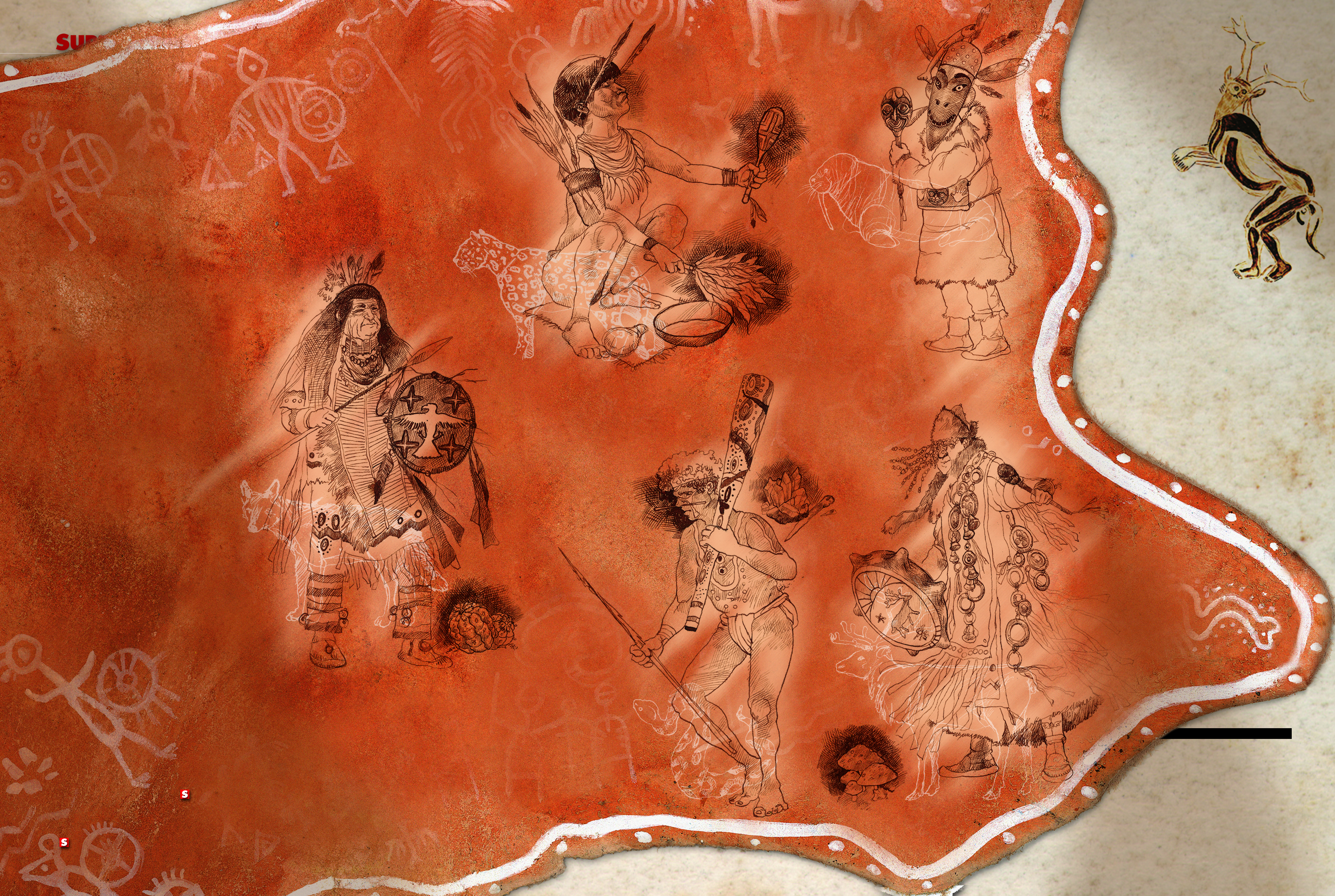 Na região de onde vem a palavra “xamã”, o animal cultuado é a rena. Seu couro é utilizado na vestimenta de proteção contra ataques de espíritos malignos e na confecção do tambor, principal instrumento de poder dos magos curandeiros da Sibéria. Eles acreditam que a alma do animal sobrevive no tambor e pode guiá-lo em seus transes – muitas vezes induzidos com a ajuda do cogumelo alucinógeno Amanita muscaria.